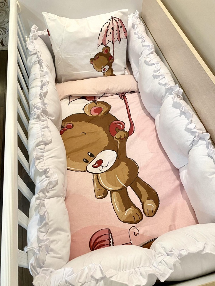 Луксозен бебешки спален комплект 8 части с обиколници "Чадърче"