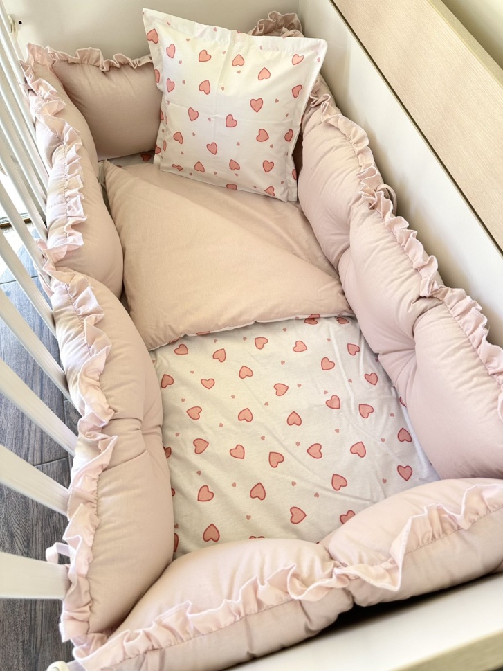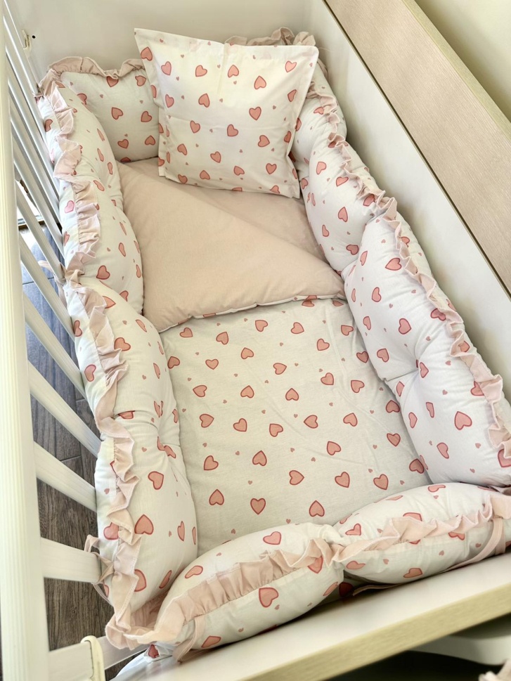 Бебешки спален комплект 8 части с обиколници "Сладки сърчица"
