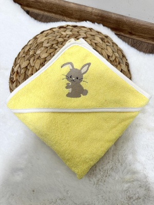 Бебешка хавлия за баня "Жълто зайче", 80/80см.