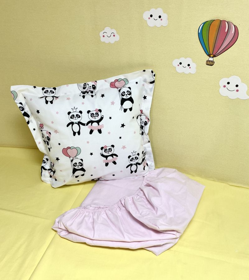 Долен чаршаф с ластик + калъфка - "Розови панди"