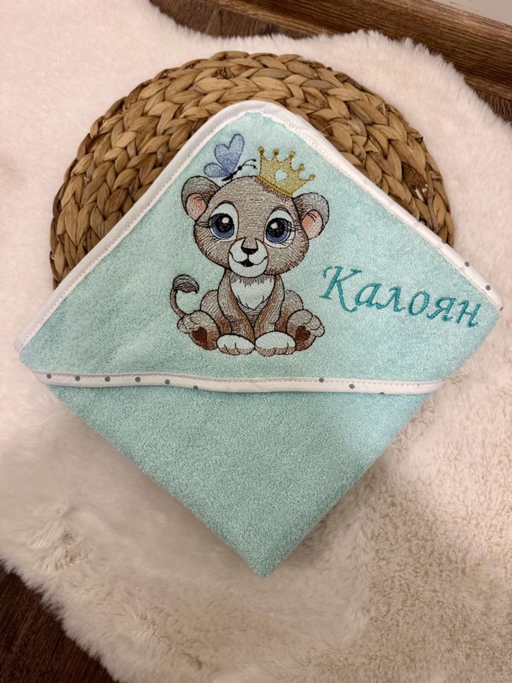 Бебешка хавлия за баня "Лъвче" - мента, 80/80см.
