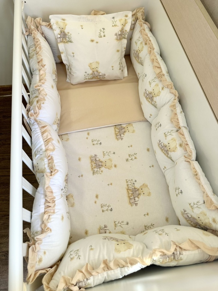 Бебешки спален комплект 8 части с обиколници "Градинарче" - бежово
