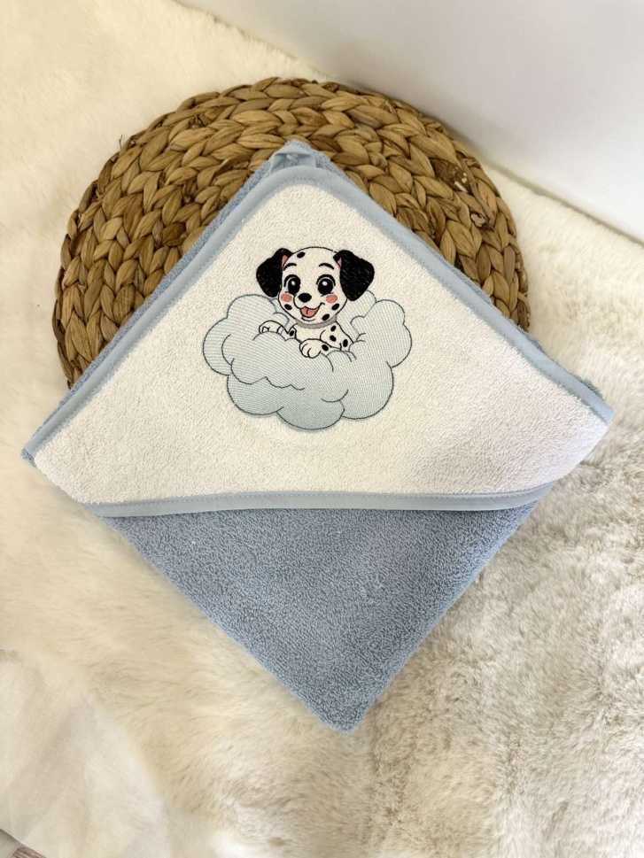 Бебешка бродирана хавлийка за баня "Кученце" - синьо, 80/80см.