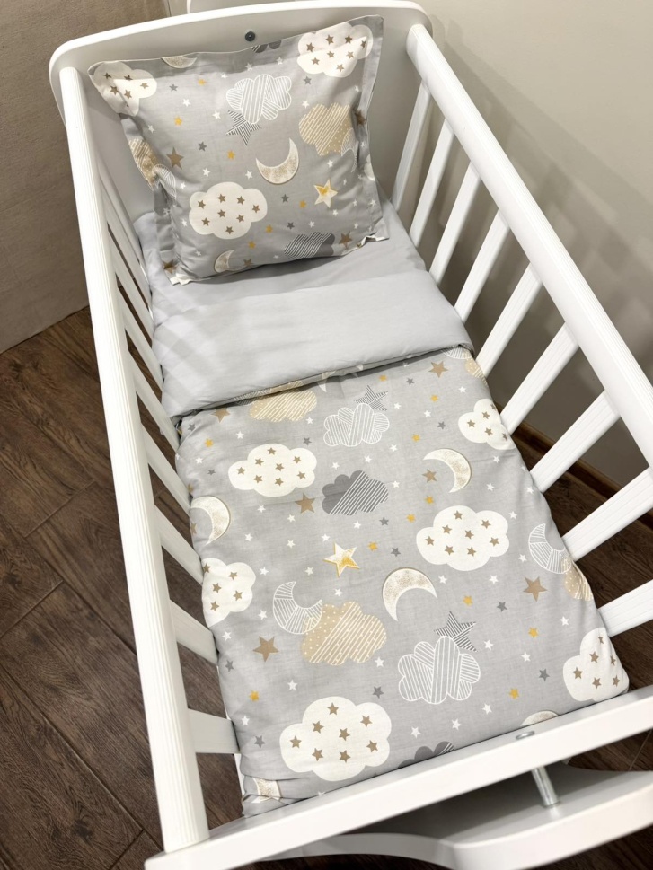 Бебешки спален комплект с олекотена завивка за малка кошара Next to me - "Сиви облачета"