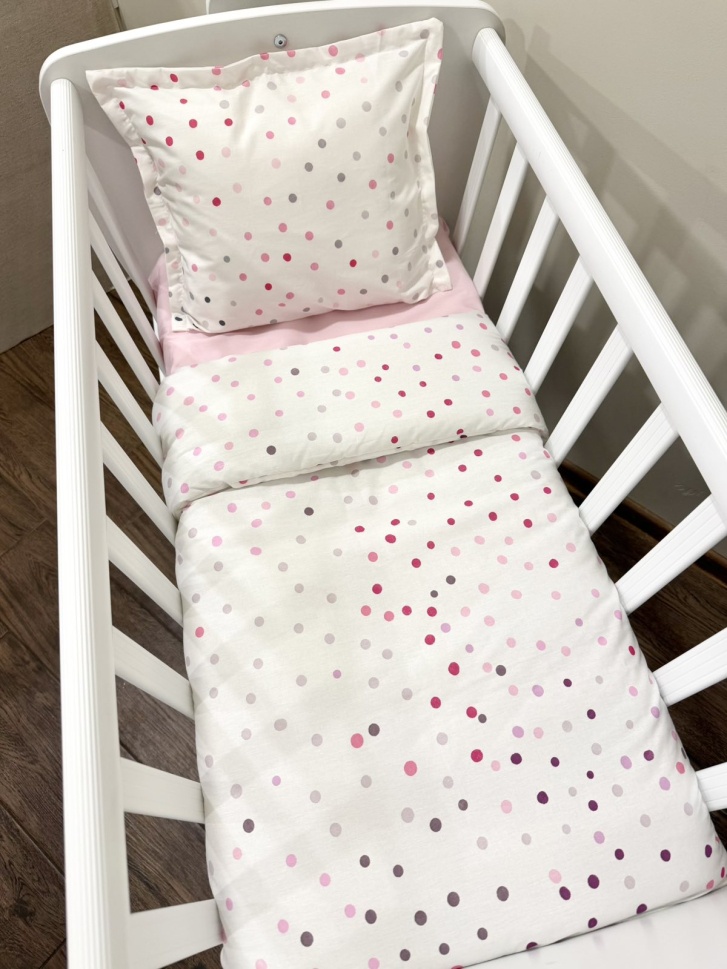 Бебешки спален комплект с олекотена завивка за малка кошара Next to me - "Точици"