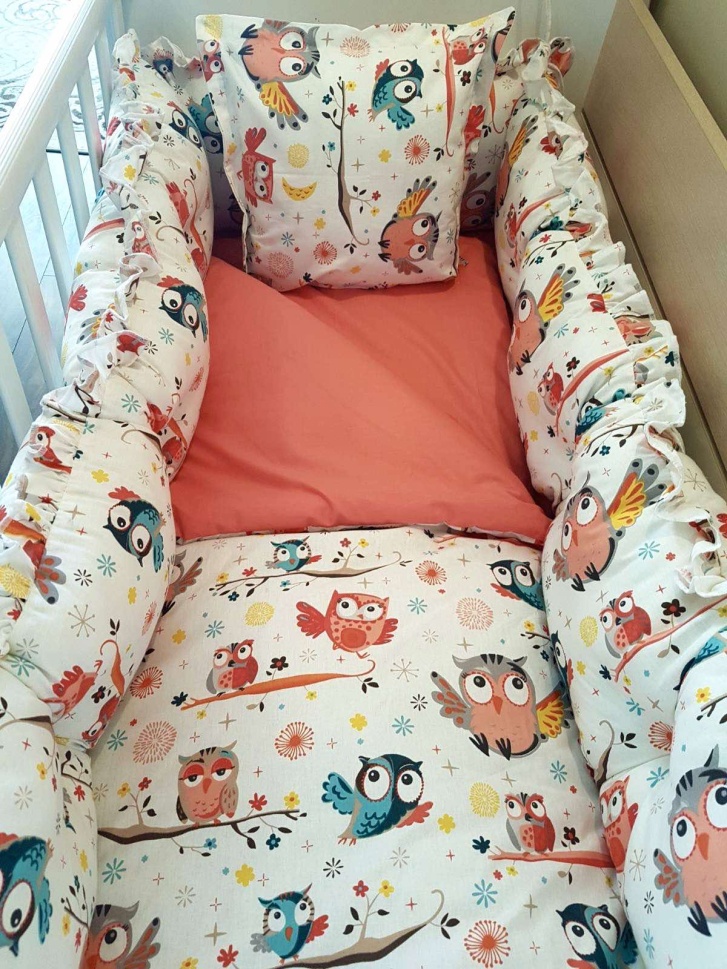 Бебешки спален комплект 8 части с обиколници "Бухалчета" - 120/60