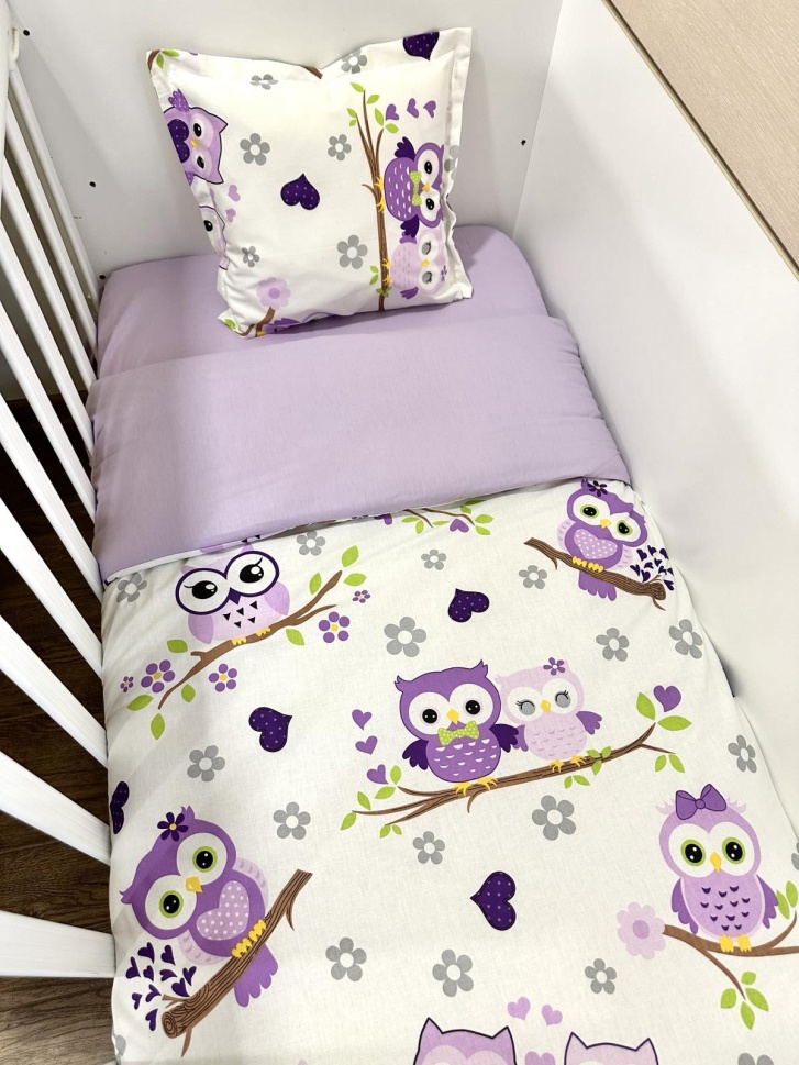 Начало ЗА БЕБЕТО Бебешки спален комплект "Лилави бухалчета"