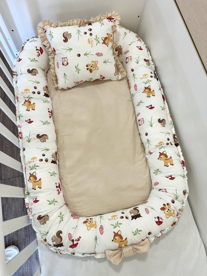 Бебешкото гнездо за сън е леко, меко и практично. Това е перфектен аксесоар, който поддържа комфорта и безопасността на бебето навсякъде.