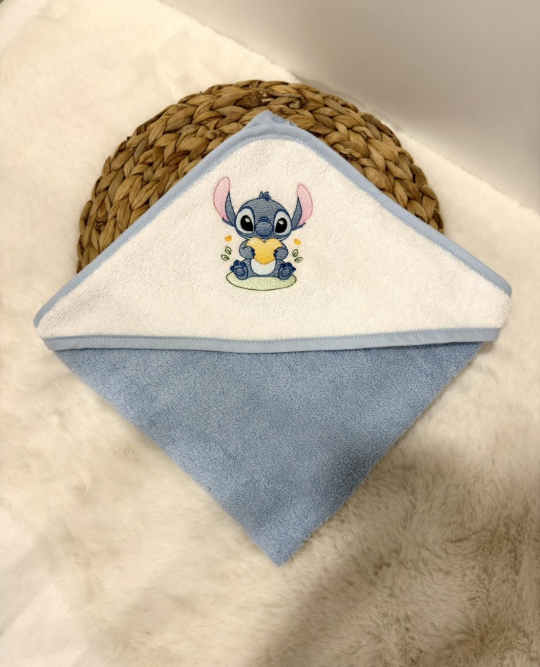 Бебешка бродирана хавлийка за баня "Стич" - синьо