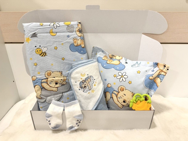 Луксозна подаръчна кутия за бебе "Сини меченца"
