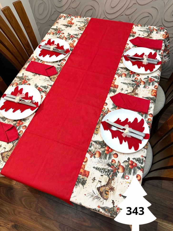 Коледен комплект за маса "Къщичка/ червено" - 343