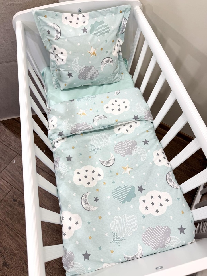 Бебешки спален комплект с олекотена завивка за малка кошара Next to me - "Облачета"