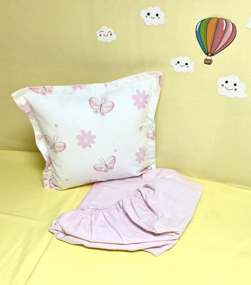 Долен чаршаф с ластик + калъфка - "Розови пеперудки"