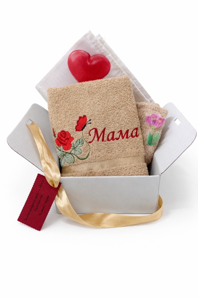 Подаръчен комплект с бродерия „Нежна роза“ - бежово