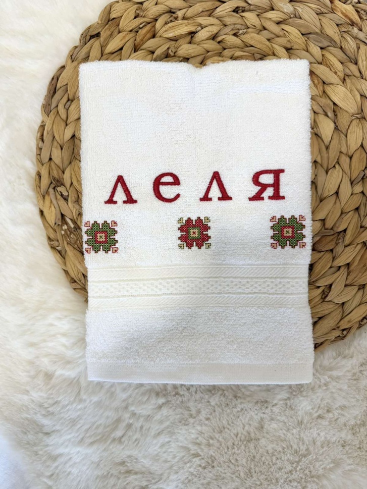Нежен и стилен комплект хавлии с фина машинна бродерия на шевица, създаден с много внимание към детайла. Всяка хавлия е персонализирана с надпис, което я прави изключитело подходяща за подарък с лично послание и емоционална стойност.