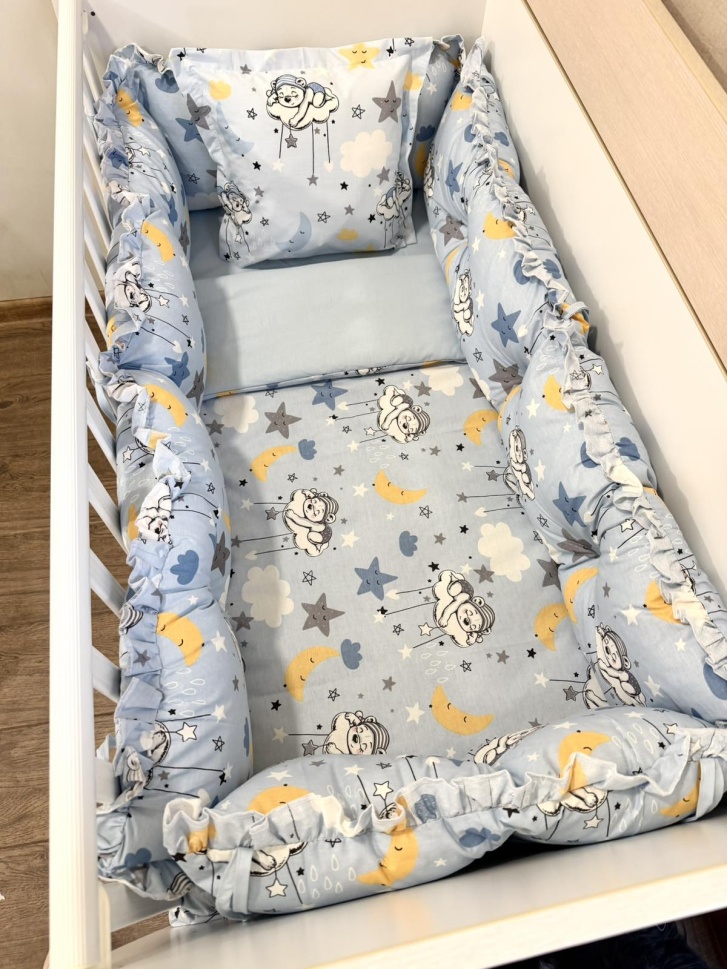 Бебешки спален комплект 8 части с обиколници "Син сънчо", 120/60см