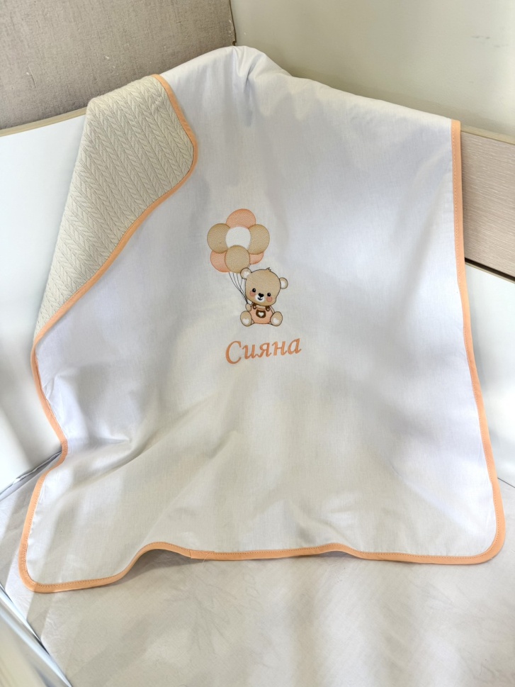 Персонализирано бебешко одеяло с бродерия "Мечо" - праскова, 80/90см.