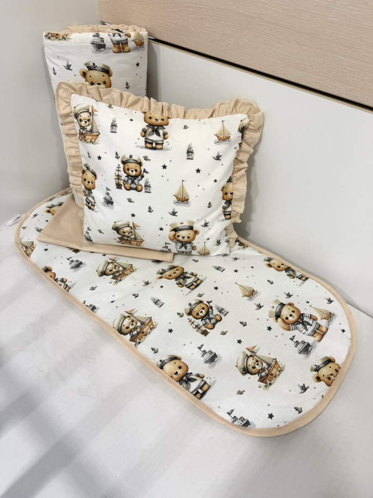 Бебешки комплект за количка + непромокаема подложка "Моряче" - бежово