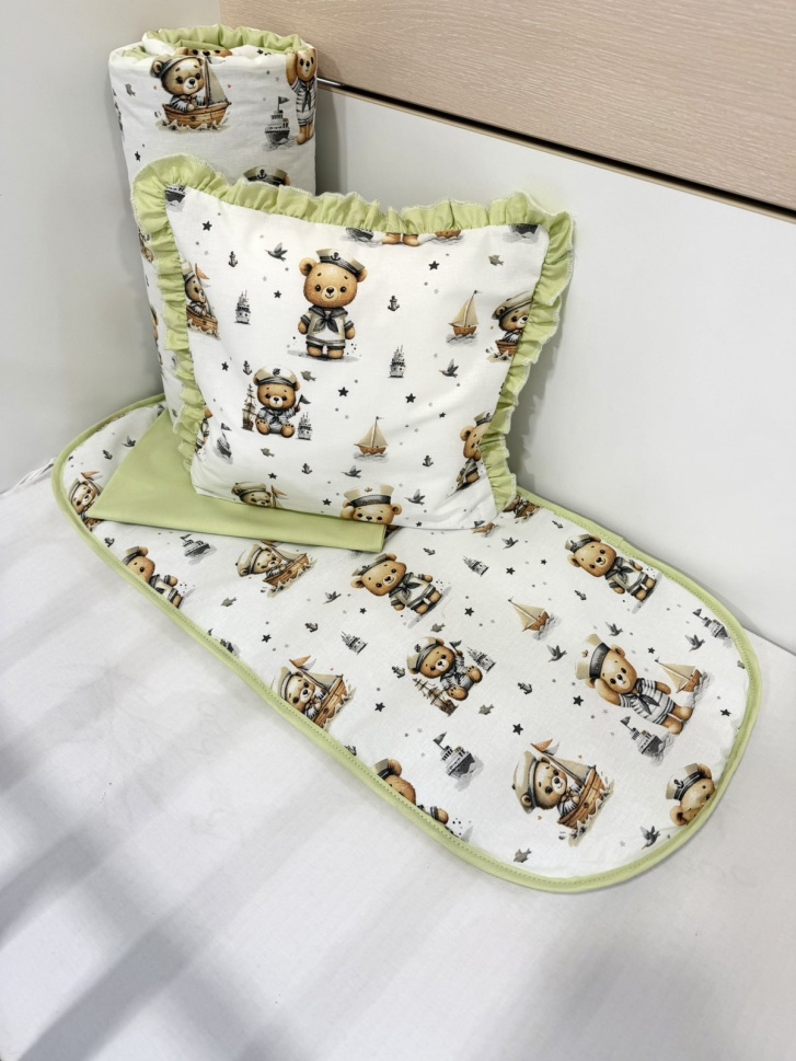 Бебешки комплект за количка + непромокаема подложка "Моряче" - зелено