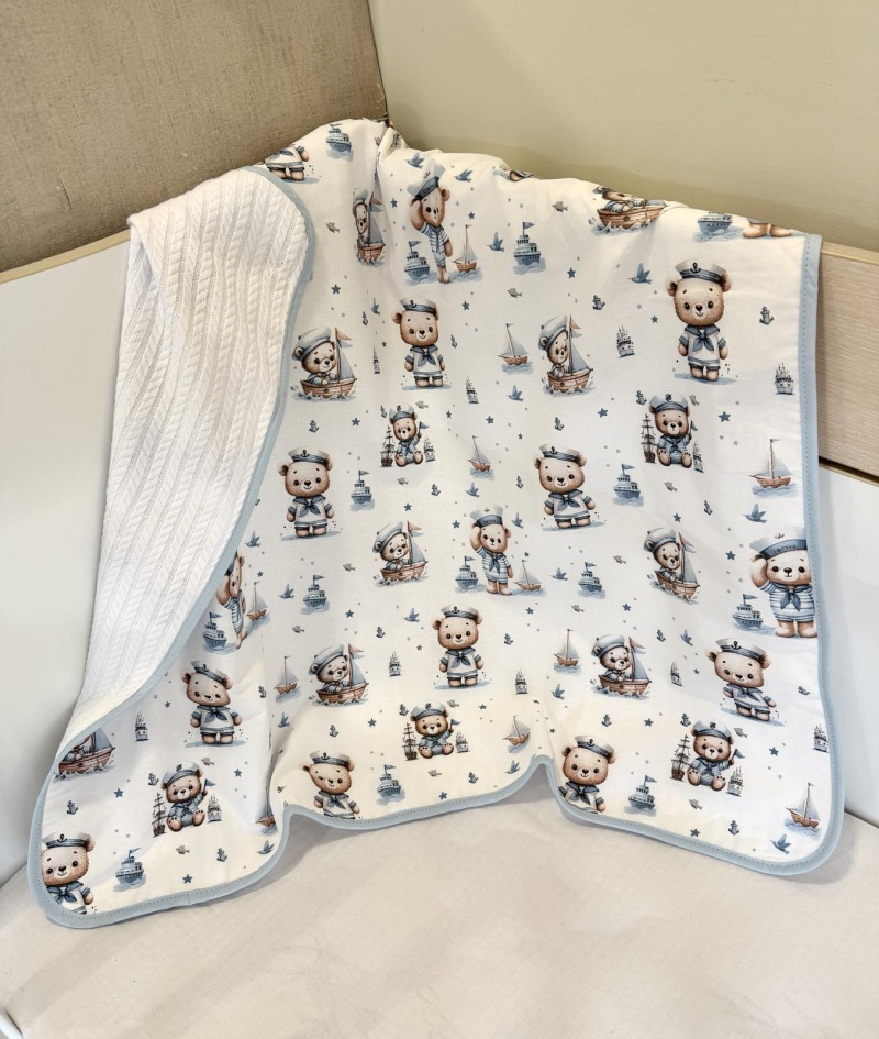 Бебешко одеяло - "Моряче" - бяло/синьо - 80/90см.