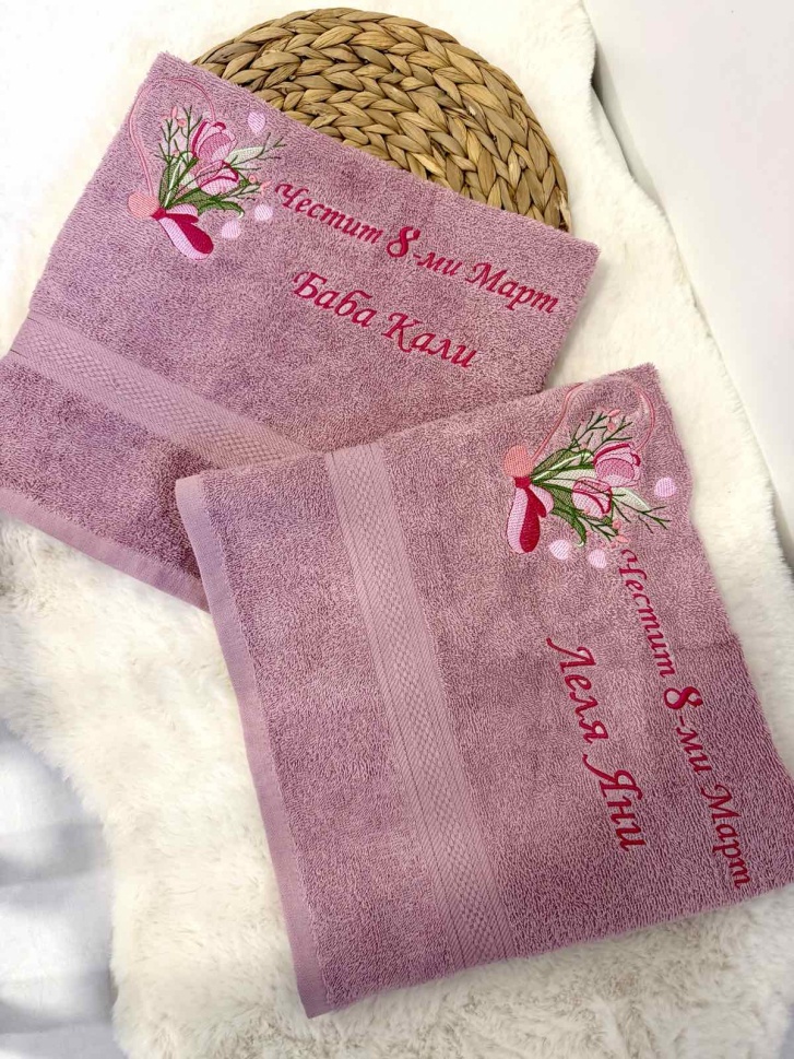 Персонализирана хавлия с бродерия "Честит 8ми март" - пудра