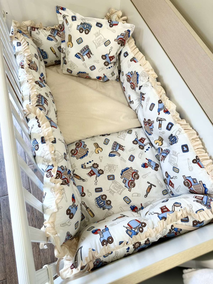 - Обиколниците се появиха с основната мисия да предпазват мъниците от твърдите решетки на кошарата. Нашите са плътни, пухкави и обхващат цялата кошара за максимален комфорт и безопасност. Пълнежа е силиконов пух, а от вътрешната стара има пришит допълнителен слой плат, за да сме сигурни, че няма да имате проблем при пране и продължително ползване.
