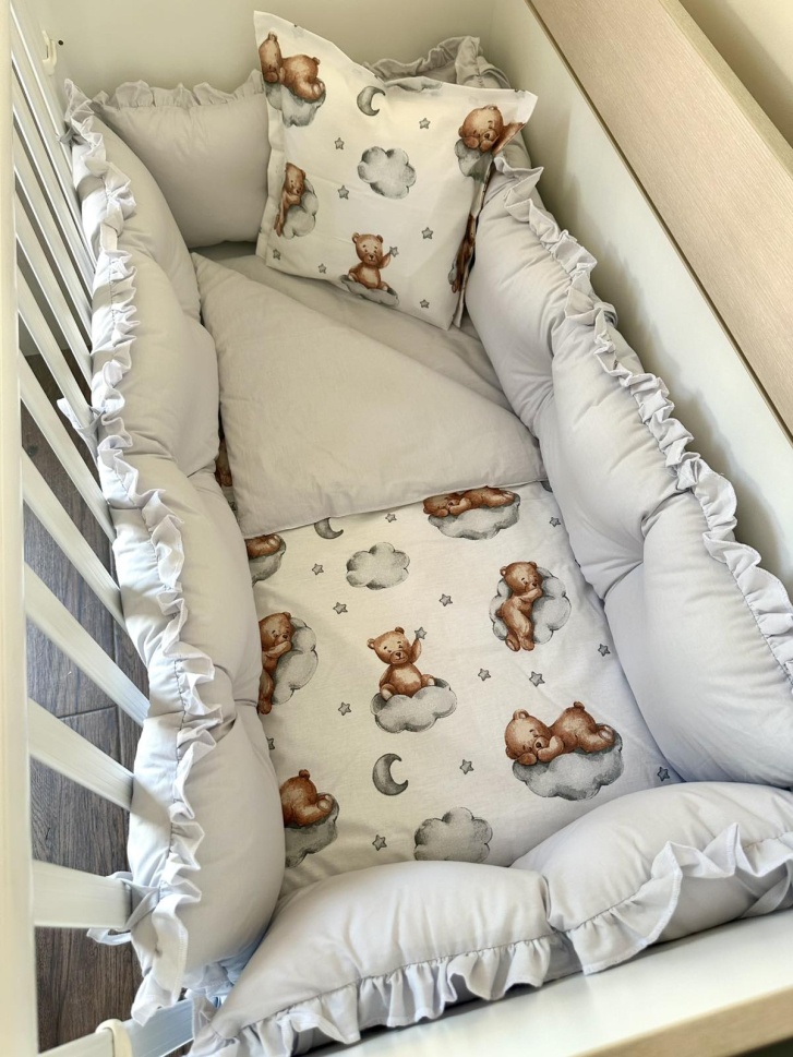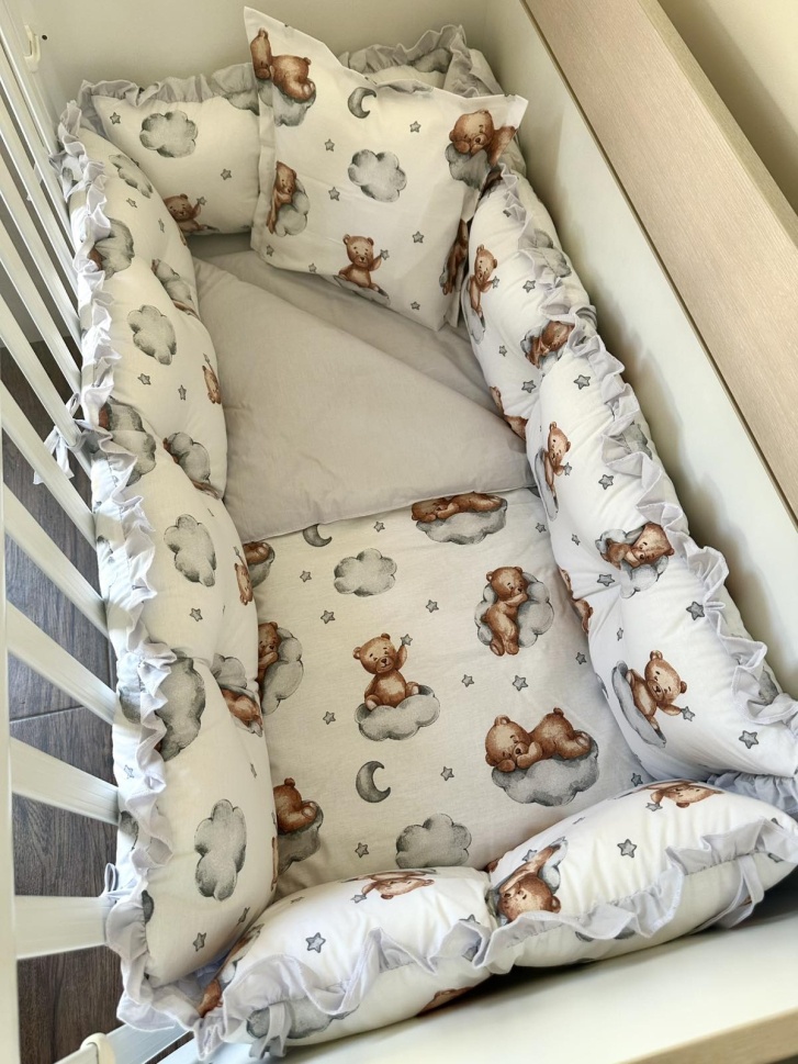 Бебешки спален комплект 8 части с обиколници "Сиви мечета"