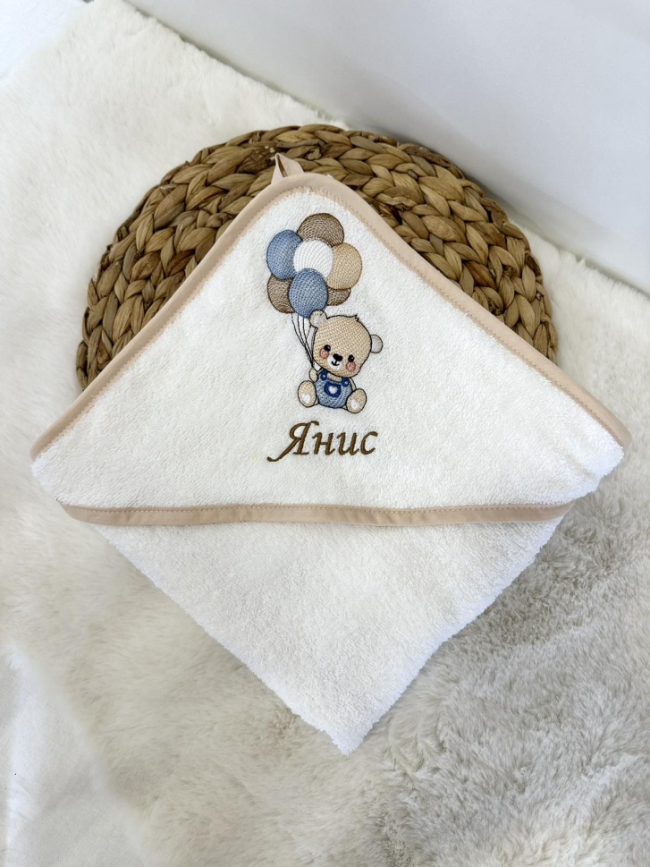 Бебешка бродирана хавлийка за баня "Мече с балончета"