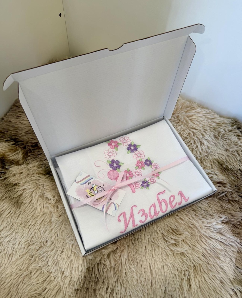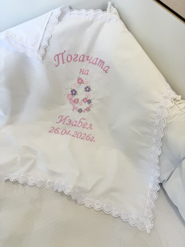 Красиво бродирано платно за завиване на погачата на 40-тия ден.