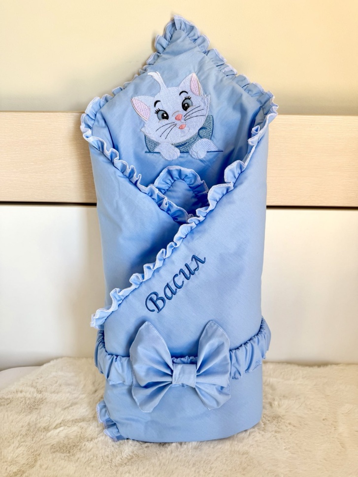 Персонализирано порт бебе за изписване с бродерия "Коте" - синьо , 80/80см.